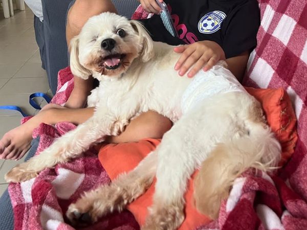 Story: Lucky boy was part of a group of dogs left behind by their previous owner who was a rescuer who sadly and suddenly passed away. He is now in good health and has good energy despite his age and just waiting for the right family to call his own.